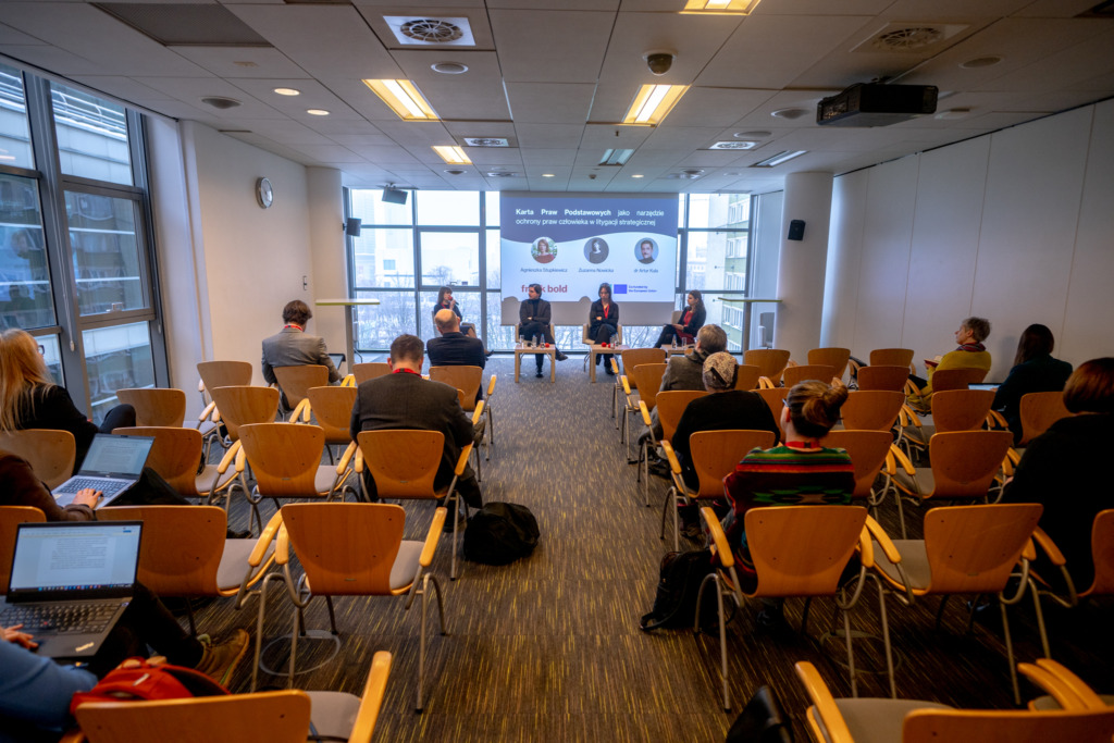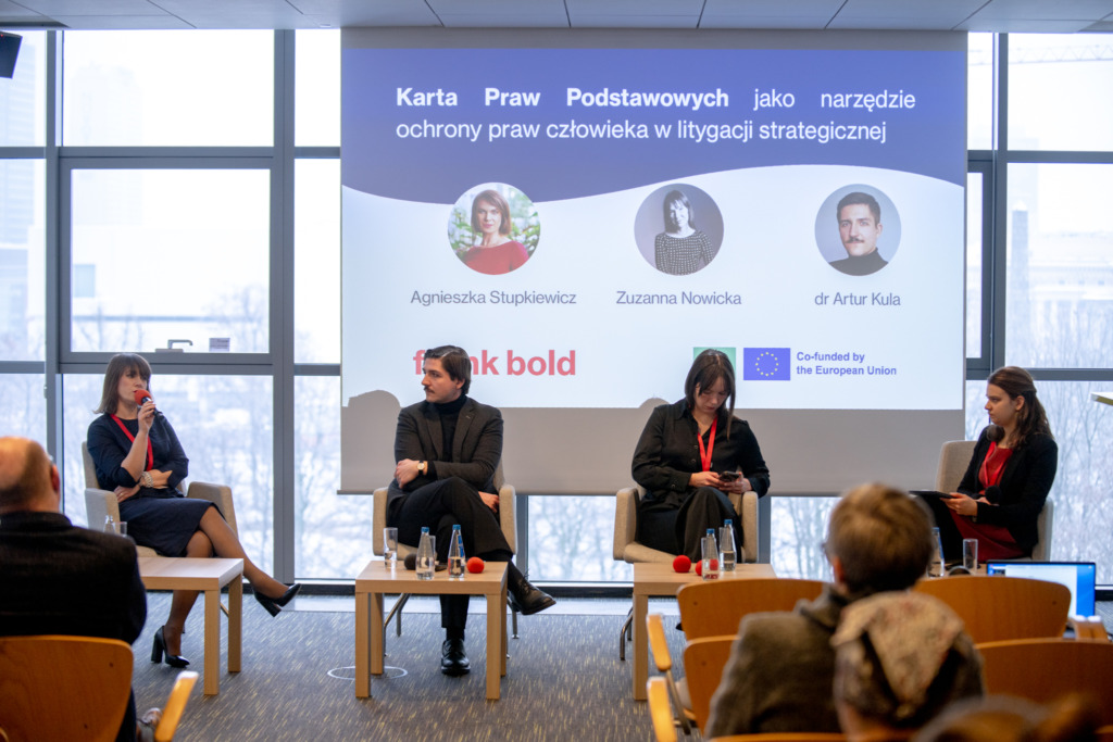 Znakomici goście i gościnie rozmawiali o zastosowaniu Karty w litygacji strategicznej, legislacji krajowej, wdrażaniu funduszy europejskich oraz w perspektywie przyszłych wyzwań politycznych, technologicznych i klimatycznych.